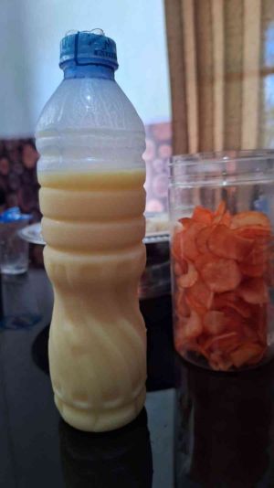 - Masukkan minas dalam botol yang telah disterilkan sebelumnya