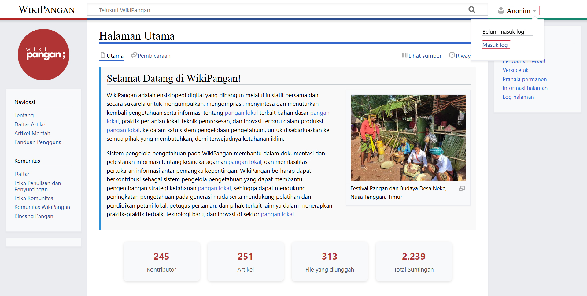 Laman WIkiPangan Menuju menu Log ini