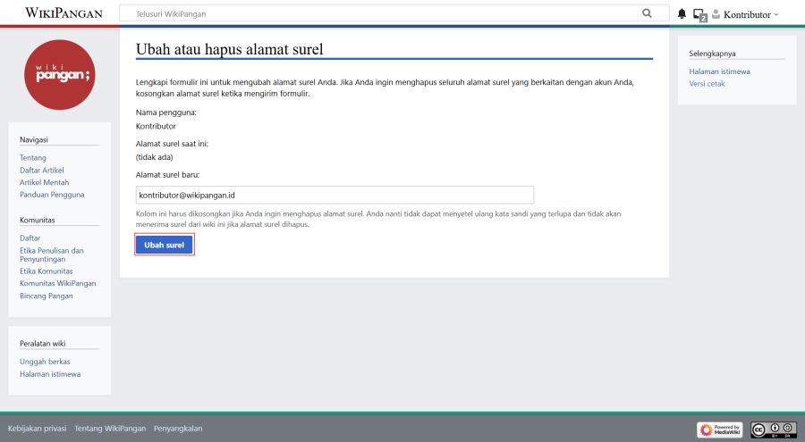 - Tambahkan alamat email pada kolom yang tersedia, lalu klik "Ubah surel" untuk simpan perubahan.