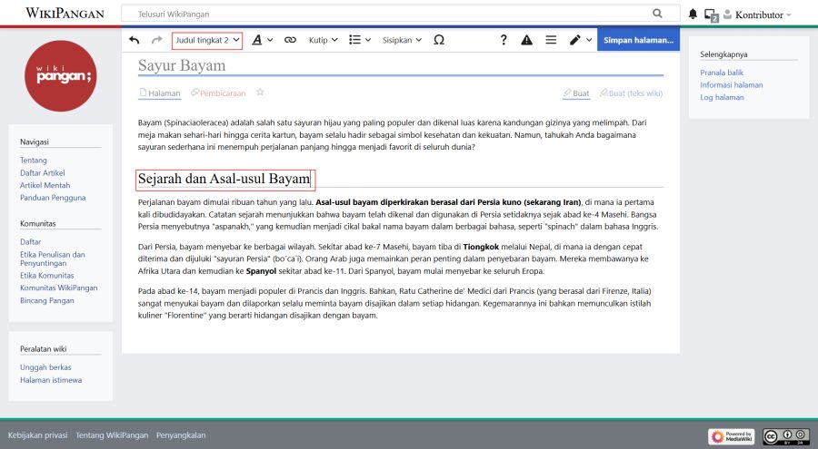 Struktur Artikel di WikiPangan